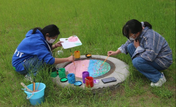 艺术传媒学院团总支组织开展“多彩校园 井上添画”主题井盖美化活动为喜迎党的二十大、庆祝建团100周年🏋🏽♀️,深入学习宣传贯彻习近平新时代中国特色社会主义思想,落实立德树人根本任务,引导团员学生坚定